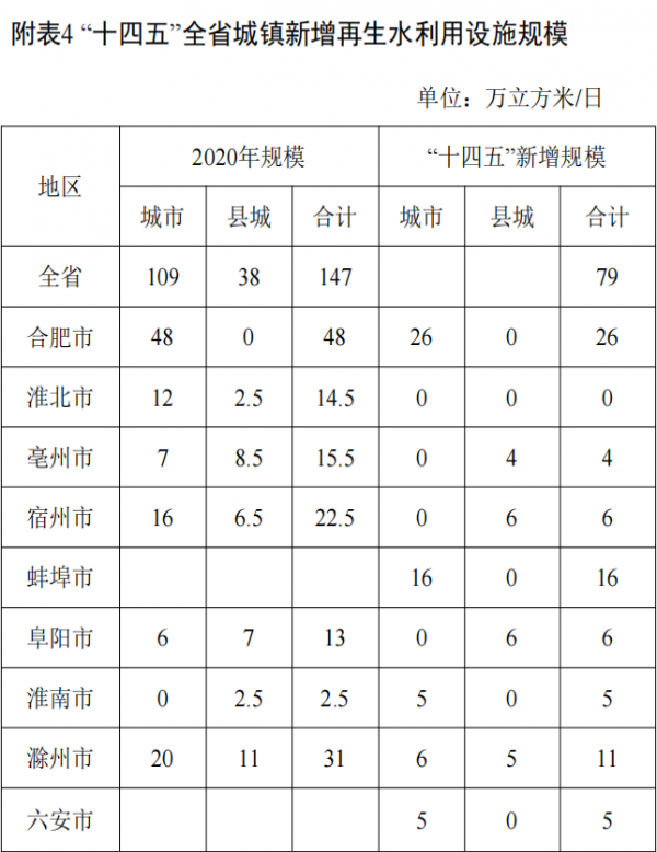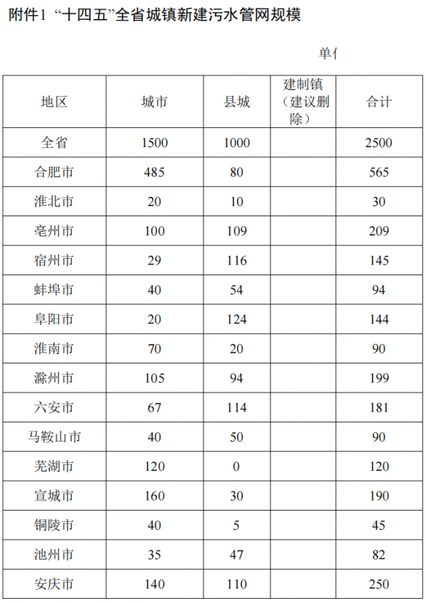 “十四五”安徽省城鎮污水處理及資源化利用設施建設項目庫